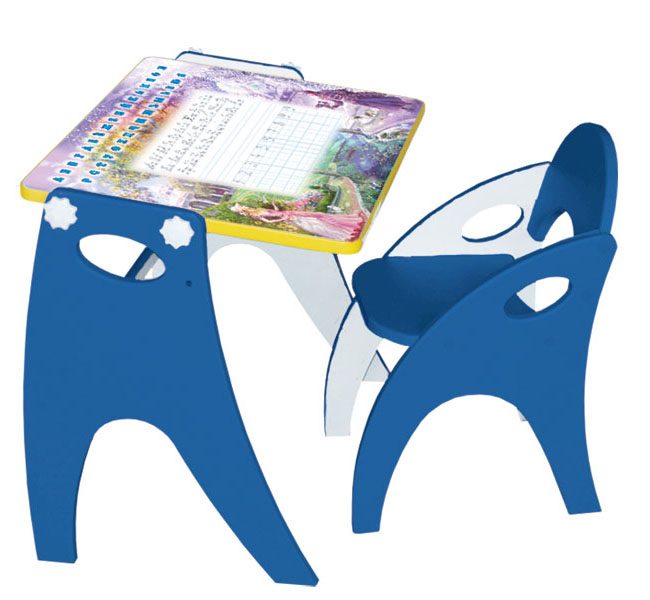 Столик-парта-мольберт (трансформер) и стульчик Изделия предназначены для детей от 3-х лет. Набор детской мебели Столик-парта-мольберт состоит из двух предметов: парта-мольберт (трансформер) и стульчик. Столик-парта-мольберт имеет механизм трансформации, который позволяет превращать столик в парту и мольберт. Поворот осуществляется при помощи поворотного шарнира, а фиксация - скрепляющими барашками. Столешница парты изготавливается из МДФ и с одной стороны имеет маркерную, с другой - грифельную поверхность. В данный момент могут использоваться различные цветовые решения, такие как: Возможны следующие виды аппликаций: