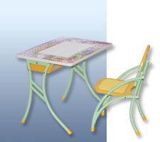 Набор детской мебели на трубном основании предназначен для детей от 3 лет (вторая ростовая группа). Набор мебели складывается, что упрощает хранение набора мебели в малогабаритной квартире. Набор поставлется в сложенном виде и не требует инструментов для сборки. Возможны модификации с 1-й и 3-й ростовой группой Изделие находится под патентной защитой.
